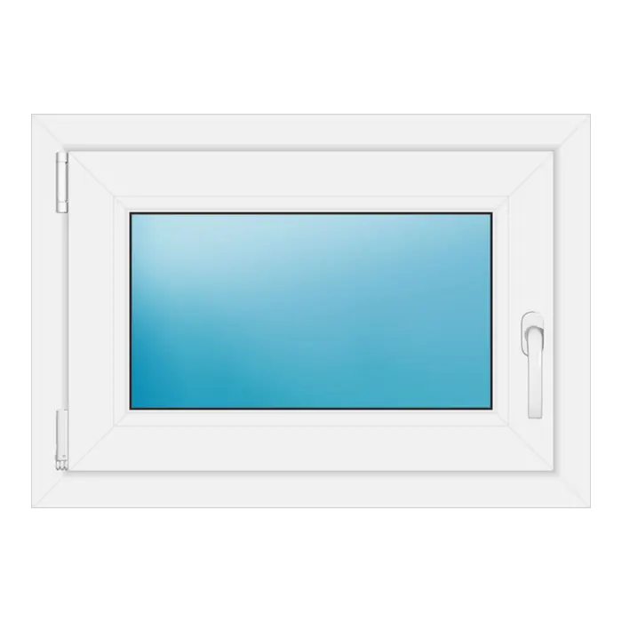 DKR (Dreh-Kipp-Rechts): Das Fenster lässt sich nach rechts öffnen und kippen. Die Scharniere befinden sich rechts, der Fenstergriff links.